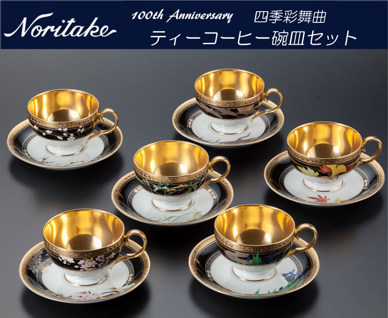 ノリタケ 100th コレクション 四季彩舞曲(ろんど) ティーコーヒー碗皿セット 絵変わり6客